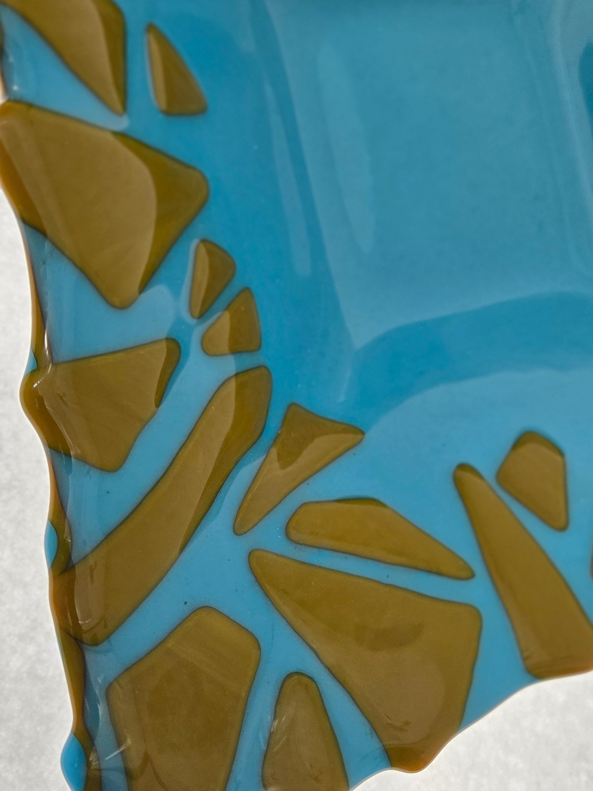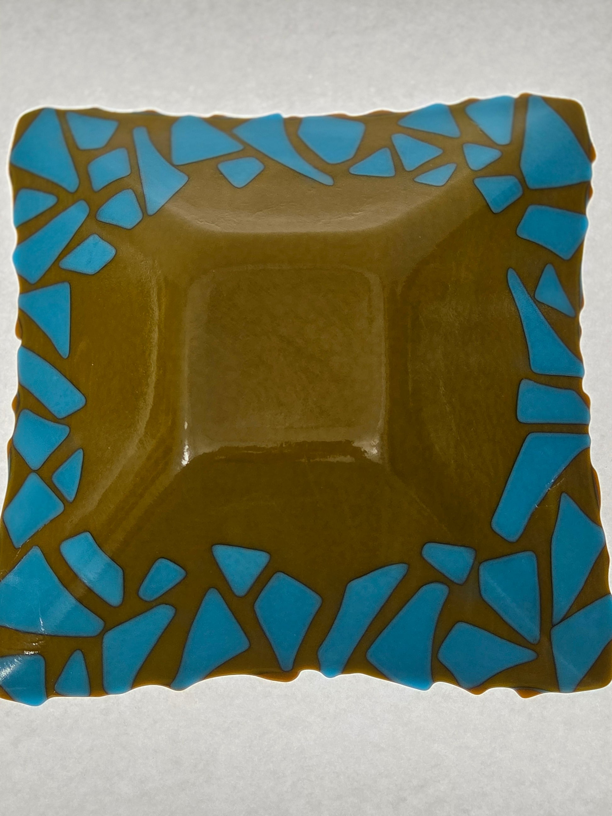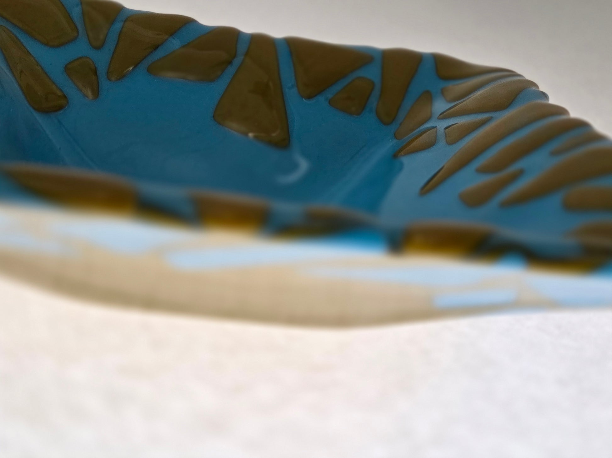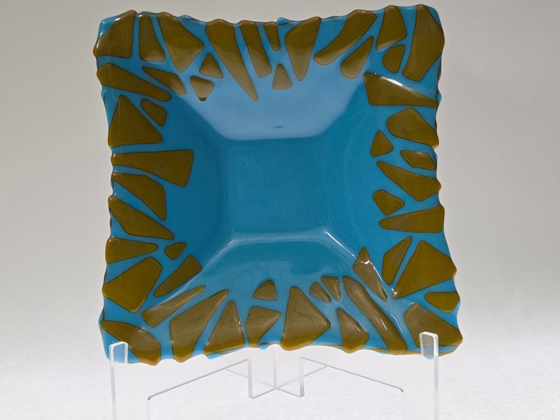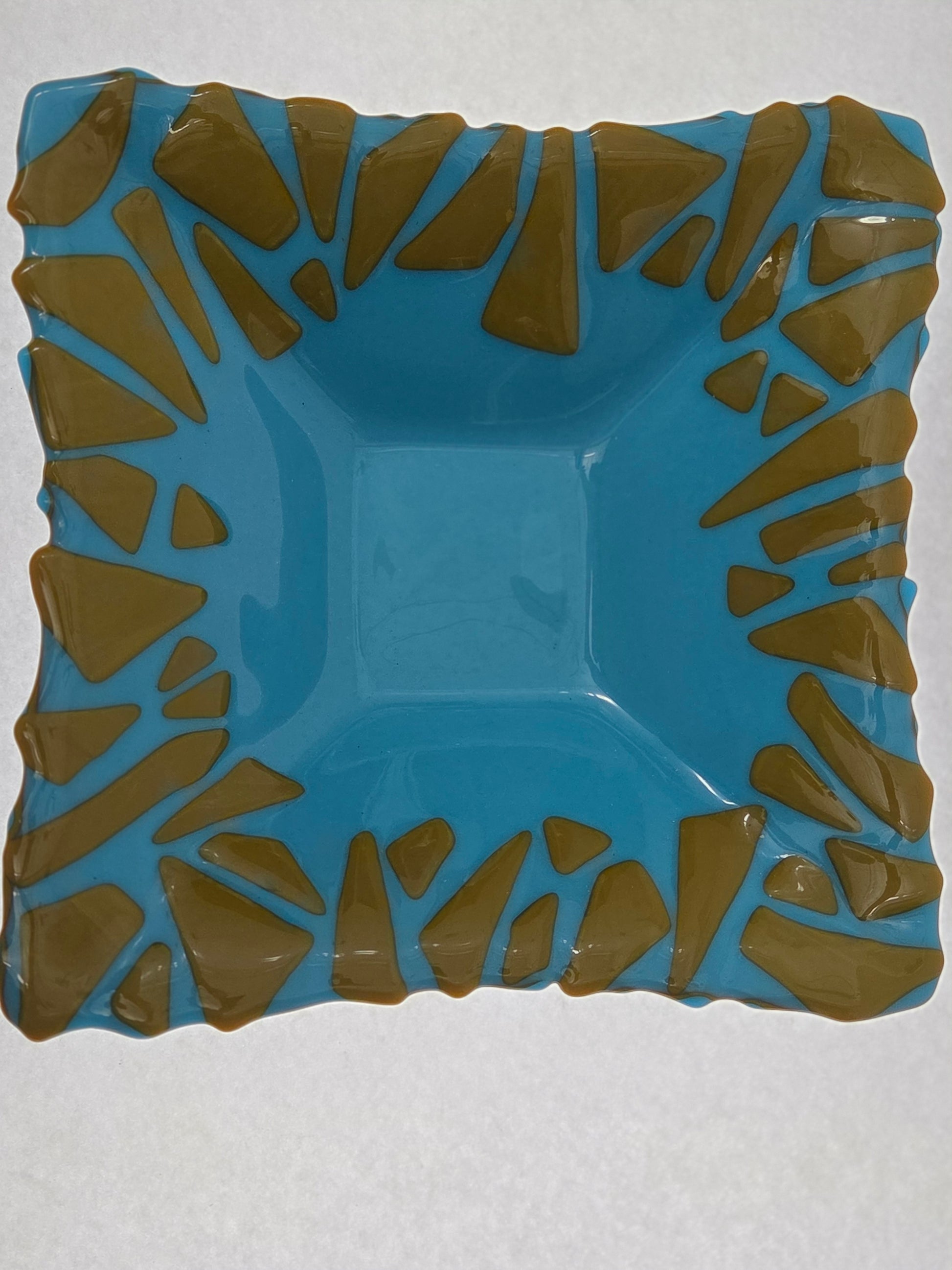 Extraordinary bowl featuring bold colors with abstract design top and bottom.