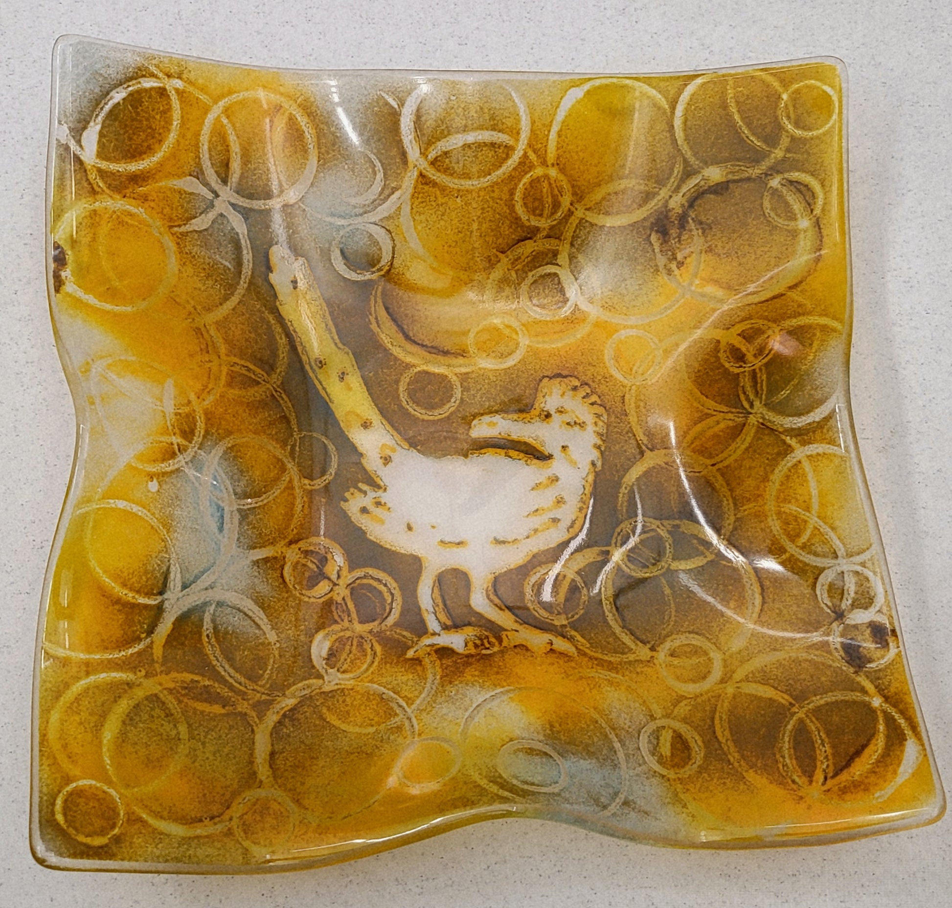 This large bowl features the earthy, sandy colors of the open plains with a playful roadrunner in the middle. At 12x12x4 this bowl is a handsome display piece and makes a fabulous salad bowl.