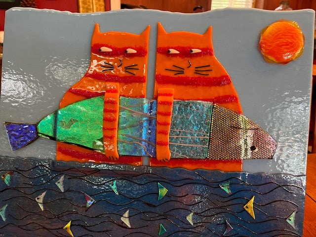 These Cat Burglars are sneaking off with the goods! This is a 12" x 18" flat panel.